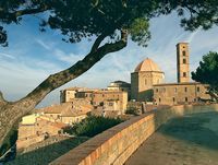 The territory of Volterra, was between the river valleys to the north and south of the river Cecina, presents a particular morphology, from gently rolling hills of the harsh cliffs, gullies and biancane to the Nature Reserve Berignone-Tatti. On the western slopes of the high hill on which stands the city you can admire the impressive geological phenomenon of the Crags, a huge chasm originated by the erosive action of water, which in the past has destroyed part of an Etruscan necropolis and a church. Nearby are the church of San Giusto and the Abbey Camaldolese (XI).